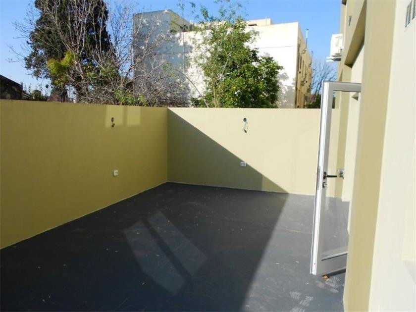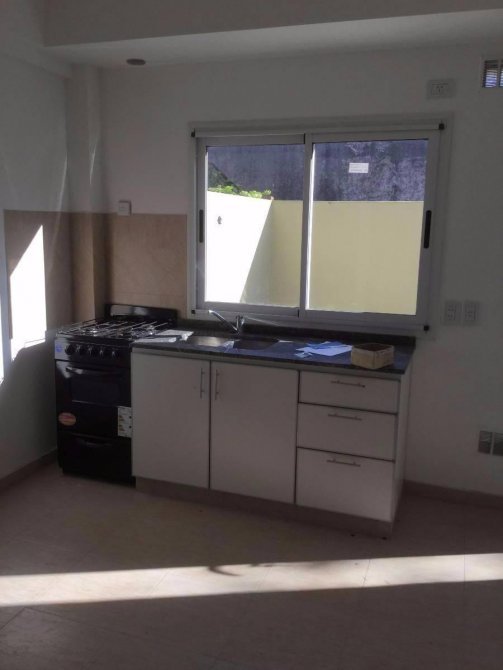 Excelente departamento de 2 ambientes en planta baja. Amplio comedor diario, cocina equipada con muebles bajo mesada, bacha doble de acero inoxidable, artefacto de cocina, ventanas de aluminios línea modena, termotanque eléctrico, pisos cerámicos rústicos travertino, baño completo con bañera y vanitory en mármol travertino -revestimiento cerámico en travertino y amplio patio de 30m2..