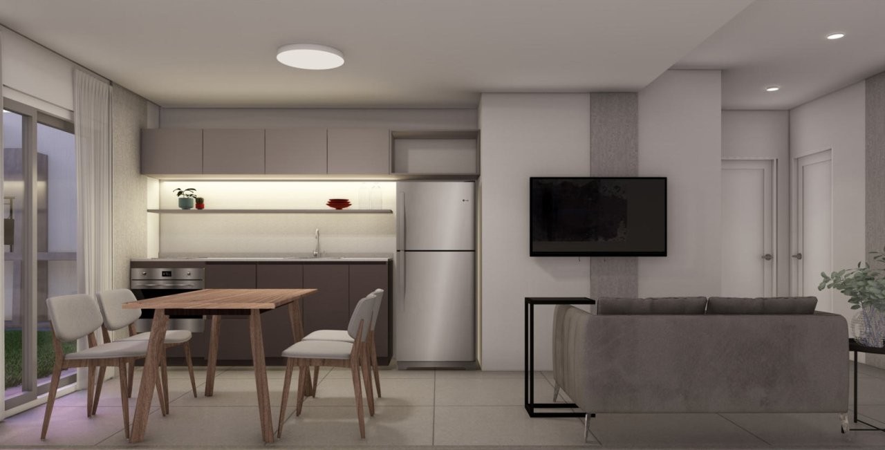 Cuenta con estar comedor, cocina independiente, toilette, dormitorio, antebaño, baño completo y una amplia expansión exterior que invita a disfrutar del aire libre en un entorno íntimo y relajado.