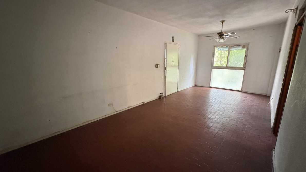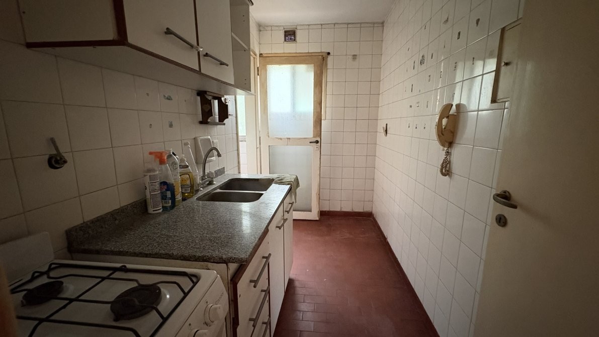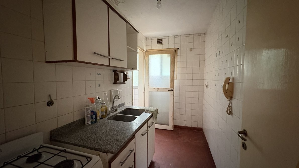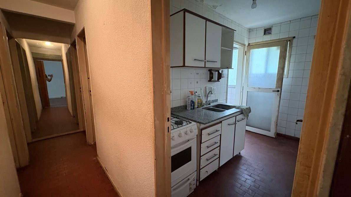 Departamento de cuatro ambientes al frente en segundo piso por escalera, consta de amplio living comedor, cocina equipada con muebles sobre y bajo mesada, lavadero cubierto, tres dormitorios con placard y baño completo.