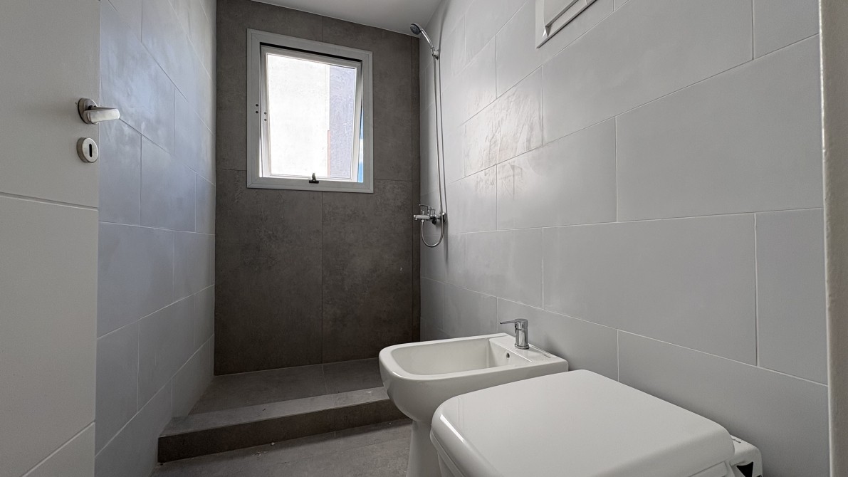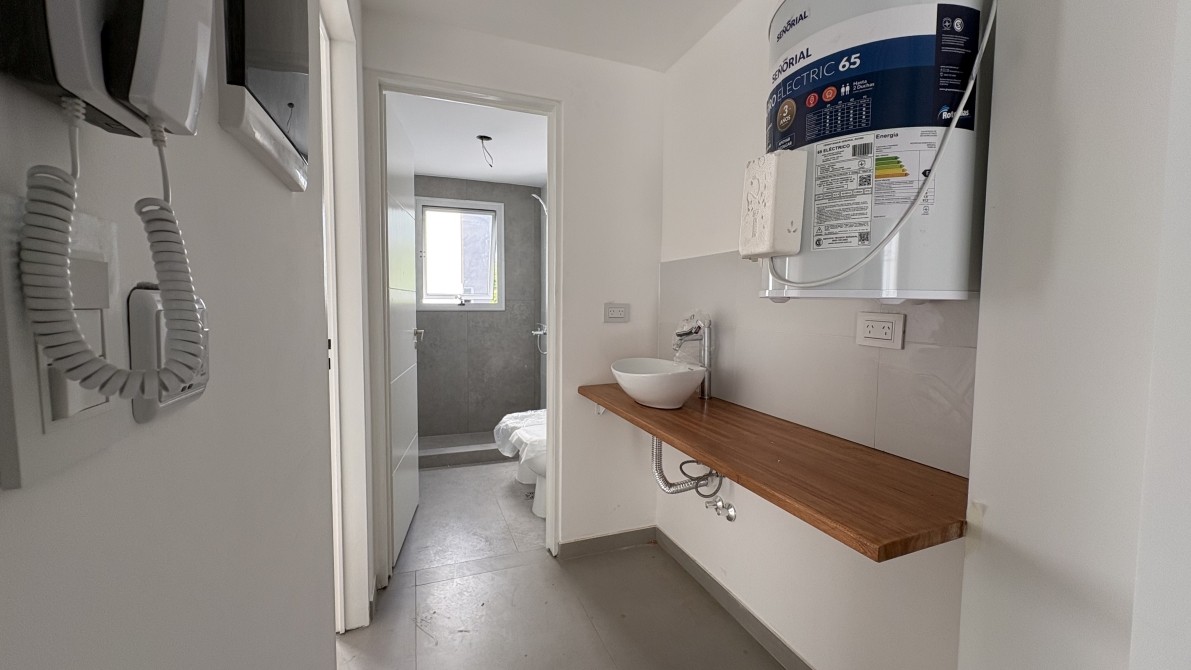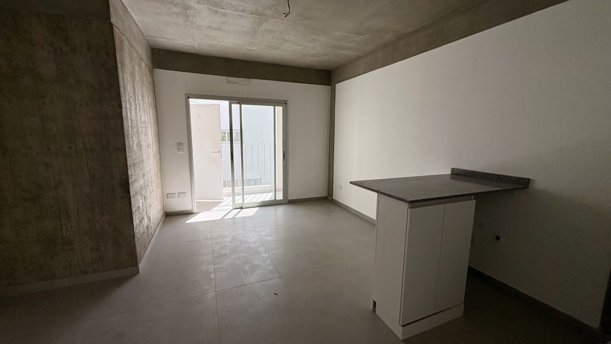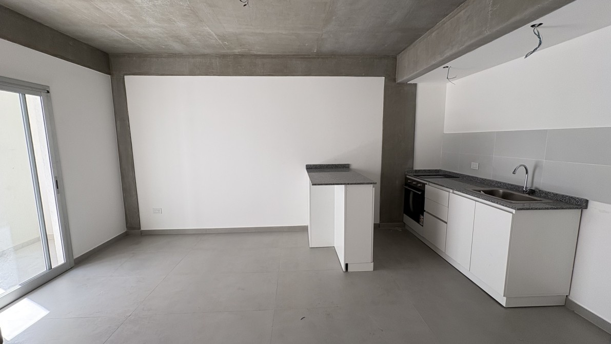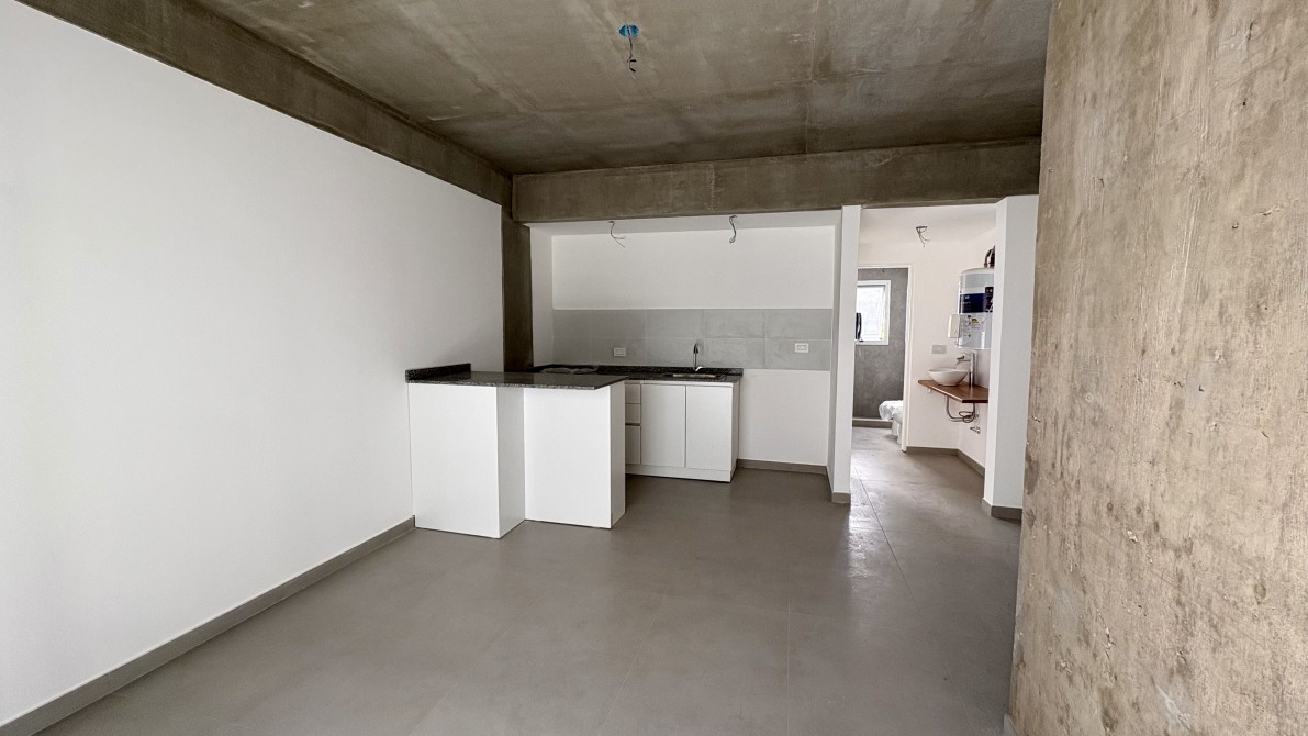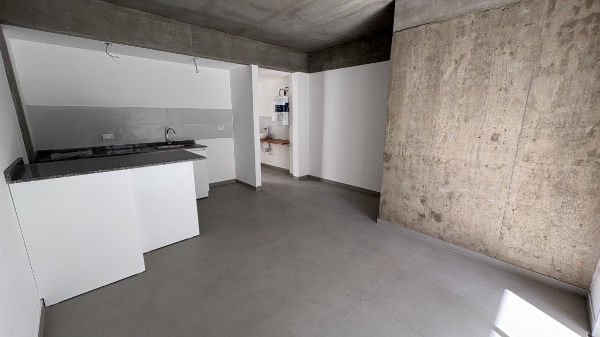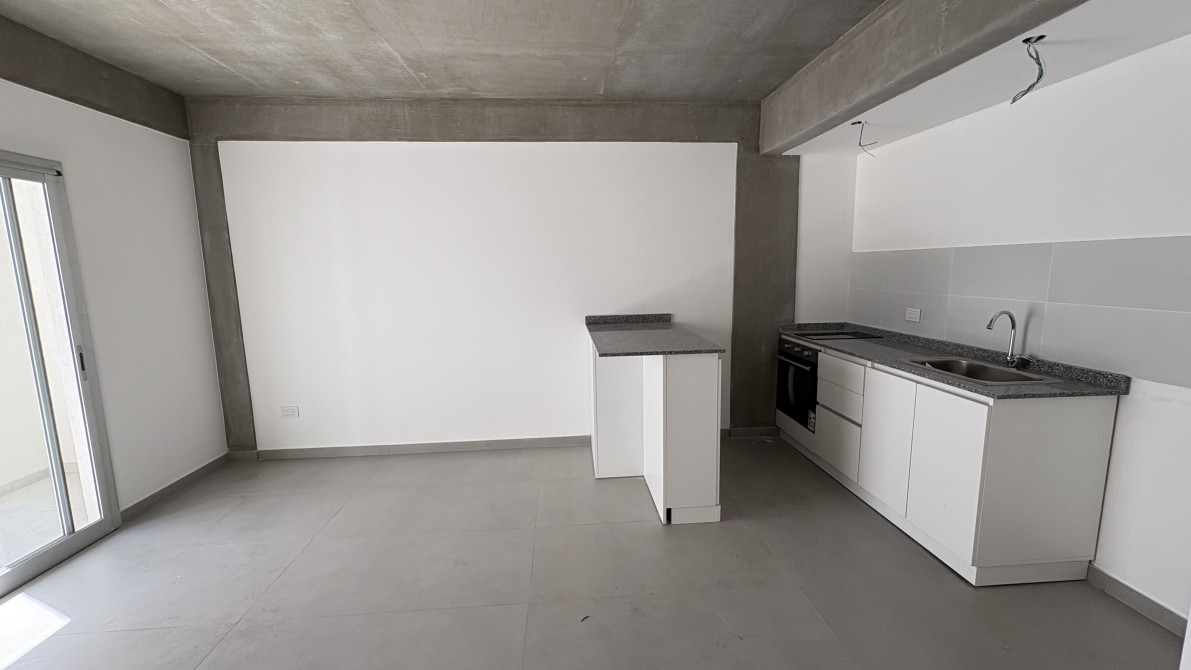 Departamento a estrenar ubicado en primer piso, que cuenta con living comedor con pisos de porcelanato, balcon, cocina equipada con muebles bajo mesada e isla , dormitorio con placard, ante baño y baño completo con ducha.