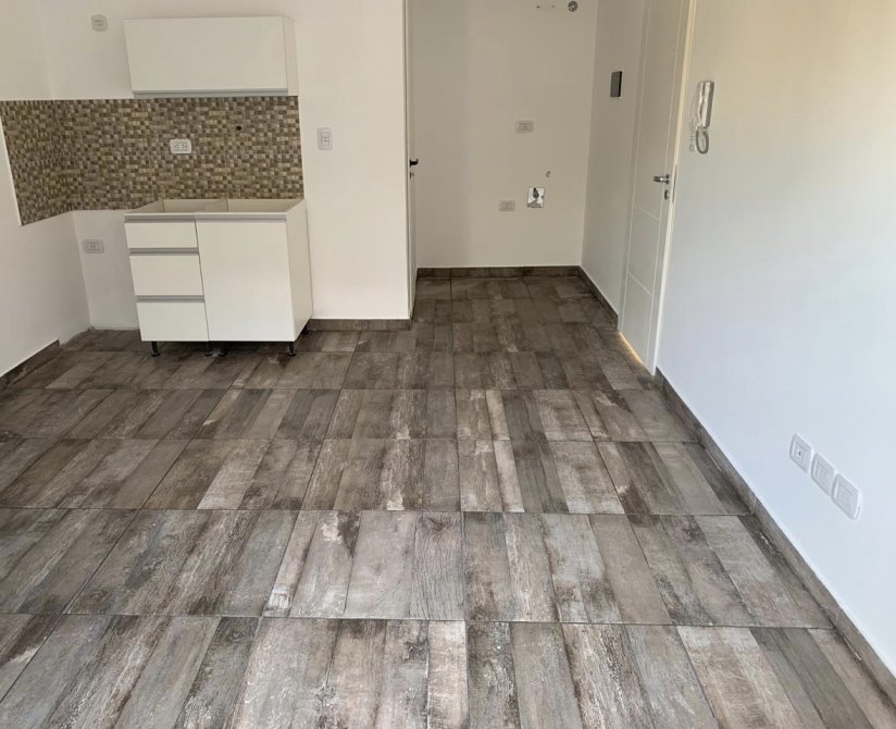 Consta de ambiente general con cocina equipada con mueble bajo mesada, pisos de porcelanato, baño completo y balcón al contrafrente. El departamento se encuentra ubicado en el segundo piso
