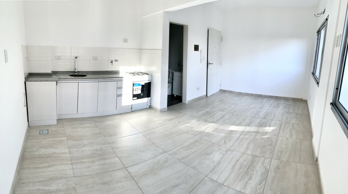 Se encuentra en tercer piso y consta de: amplio ambiente general con pisos de porcelanato, cocina equipada con muebles bajo mesada y artefacto de cocina, y baño completo.
