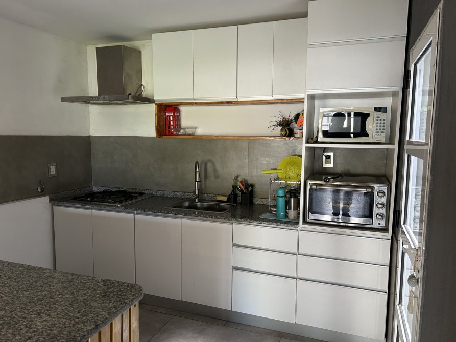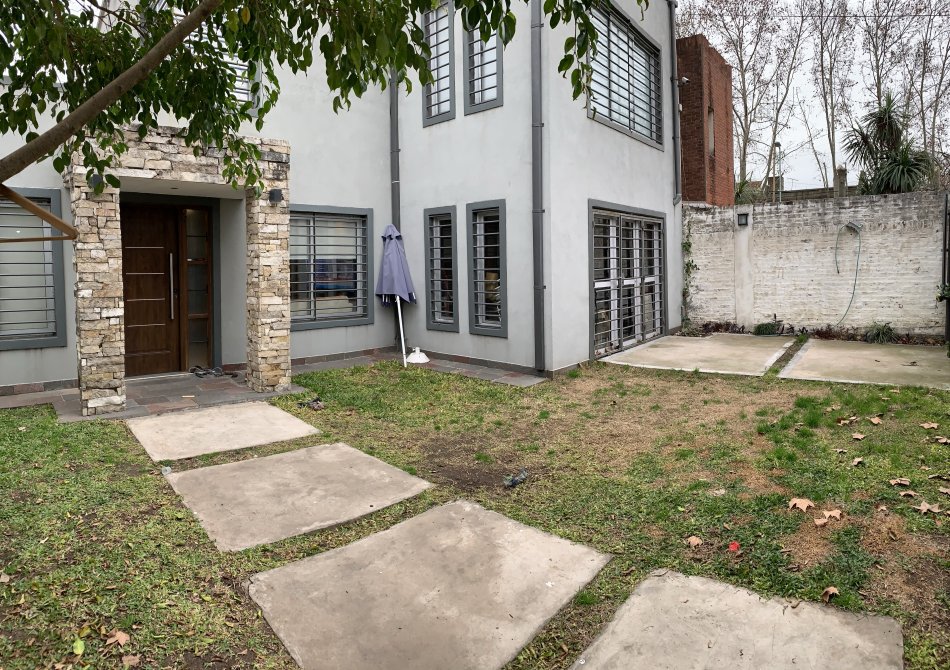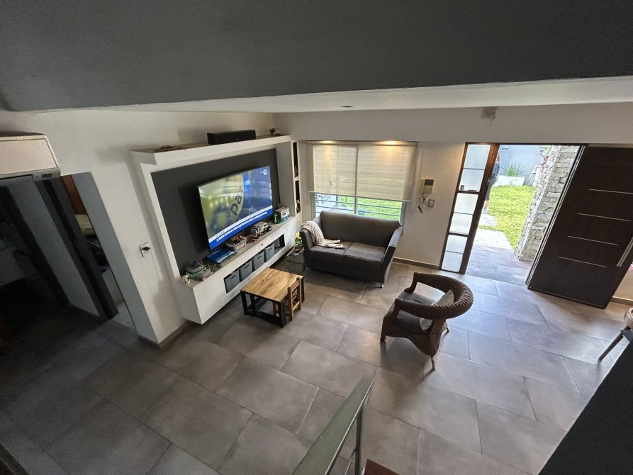 Consta de, en Planta Baja: gran jardín al frente; amplio living comedor con pisos de porcelanato, cocina completa con muebles bajo mesada y alacena, doble bacha con griferia monocomando, barra desayunadora; sala de estar o escritorio, baño completo con ducha escocesa; patio descubierto, amplio quincho con parrilla, cochera con portón automatizado.