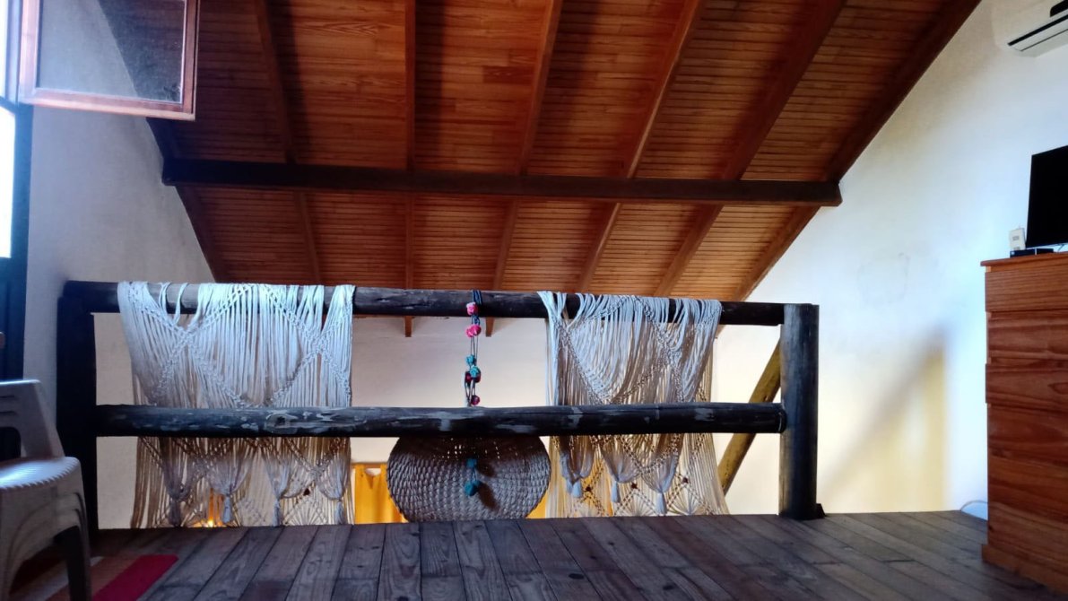 Puerta del Sol, es una casa de 3 ambientes que consta de :Ambiente principal amplio y luminoso, con un living comedor con la kitchenette integrada, dormitorio y baño completo. Sobre el ambiente principal, hay un segundo dormitorio en entrepiso de madera con parcial vista al mar. Gran predio parquizado. Pozo semisurgente con bomba que proporciona el suministro de agua a la propiedad. Deck de madera sobre lateral, entrada de vehículo techada y terraza en la segunda planta.