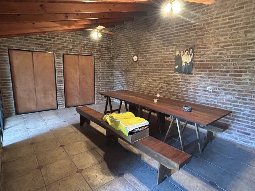 Consta en Planta baja de jardin al frente y entrada para auto, amplio living comedor, cocina comedor equipada con muebles bajo mesada y alacena, dos dormiotrios uno de ellos con placard, baño completo, fondo libre con gran quincho equipado con parrilla.