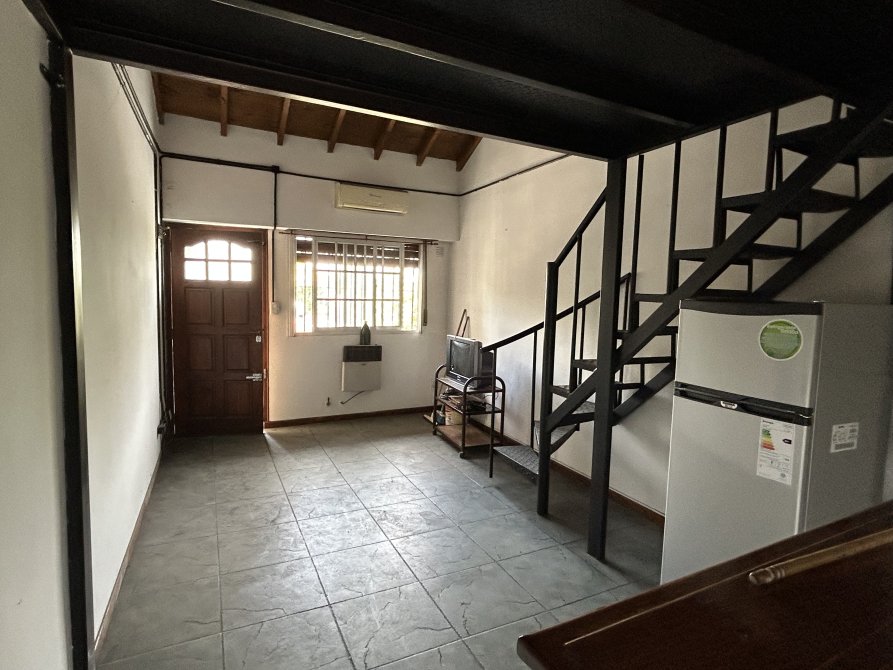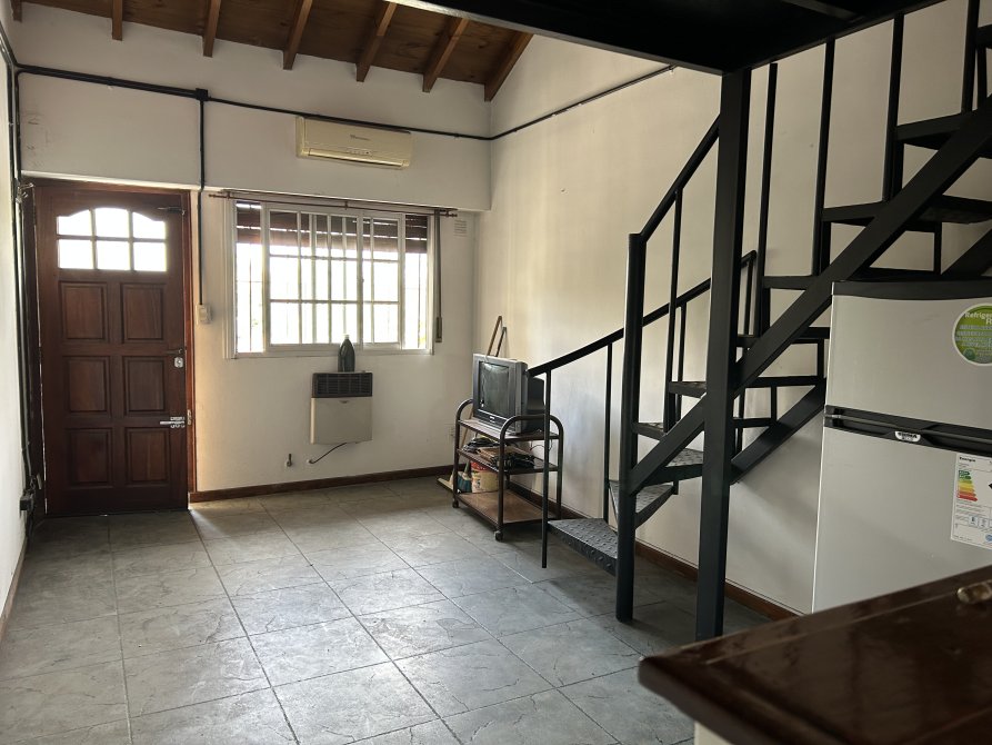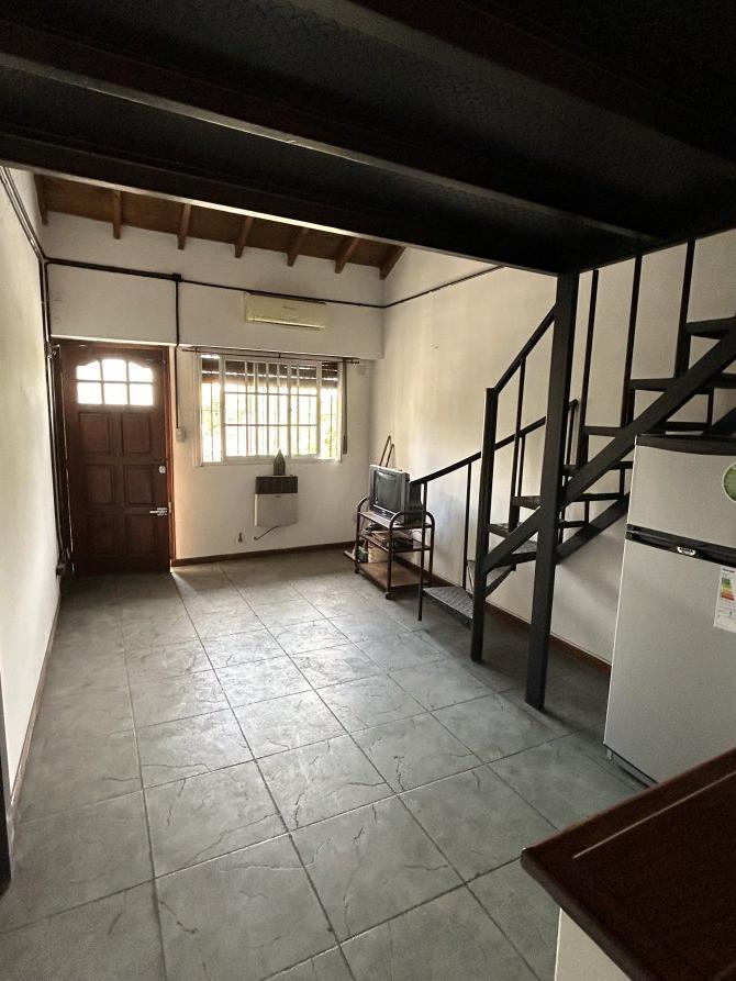 Departamento de 2 ambientes tipo loft, ubicado en segundo piso, living comedor con pisos cerámicos, cocina separada por una arcada, muebles bajo mesada y alacenas , baño completo, y amplio dormitorio en planta alta.